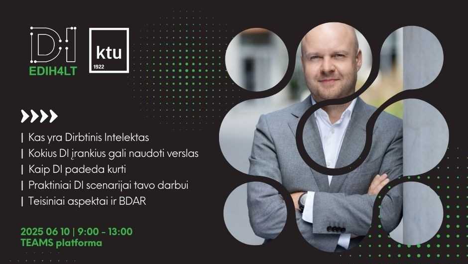 KTU taip pat yra vieno iš trijų Lietuvoje startavusio Europos skaitmeninių inovacijų centrų koordinatorius (EDIH). EDIH tikslas – efektyvinti skaitmeninę transformaciją vidurio ir vakarų Lietuvos regione veikiantiems verslo ir viešojo sektoriaus subjektams ir pagrindinių skaitmeninių technologijų diegimui. DI4 LITHUANIAN ID (EDIH4LT) renginio pabaigoje vyksiančioje tinkalveikos dalyje pristatys projekto esmę ir potencialias galimybes.