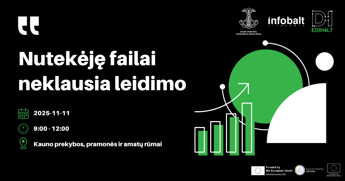 Renginyje „Nutekėję failai neklausia leidimo“ kalbėsime apie tai, kaip atpažinti kibernetines grėsmes, kaip pasiruošti galimam incidentui ir kokių veiksmų imtis, kad jautri informacija neliktų pažeidžiama.